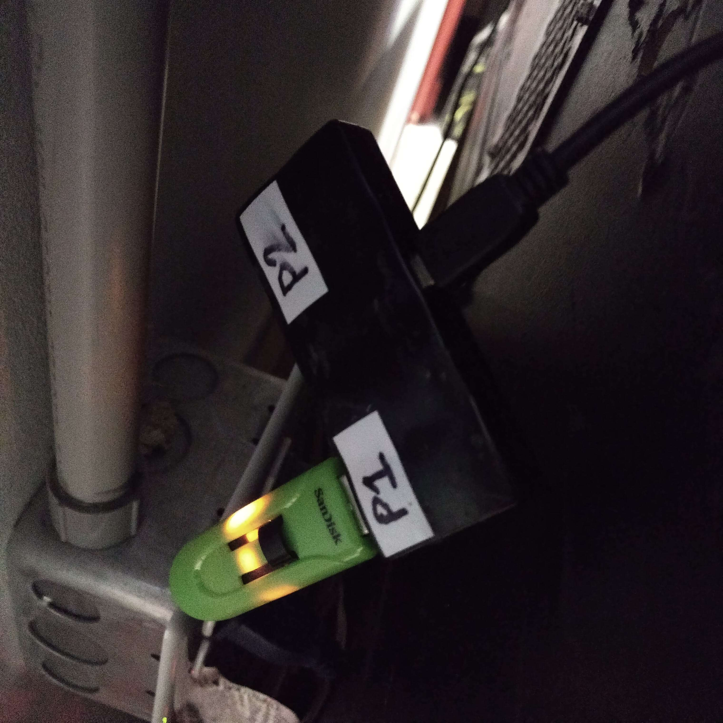 The USB hub is velcroed to P1's side of the cab. Top slot is P1, bottom slot is P2. It should look something like this: The USB hub